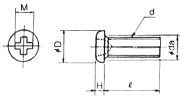 종류 (HEAD) | 나사의 호칭 | 피치 P | D | H | M | Q | da | F | G | |||